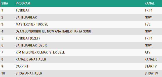 16 Kasım 2025 Pazar Reyting Sonuçları