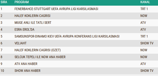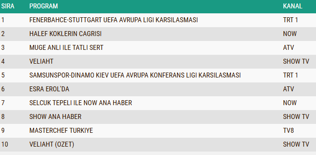 Ayrıca 23 Ekim tarihli reyting listesinde prime-time dizileri ve spor yayınlarının yoğun rekabeti dikkat çekerken, Müge Anlı'nın sabah kuşağındaki istikrarlı yükselişi, günün genel seyirci tercihlerinde belirleyici rol oynadı. Program yalnızca reytingleri ile değil, sosyal medya etkileşimleri ve izleyici yorumlarıyla da gündemin merkezinde yer alarak televizyon dünyasında adeta fenomen haline geldi.