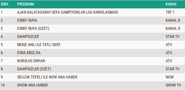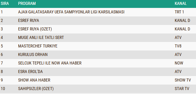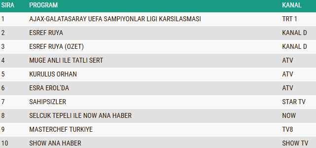 5 Kasım 2025 Çarşamba Kıran Kırana Reyting Yarışı Yaşandı! Galatasaray Ajax Maçı Mı, Eşref Rüya Mı?