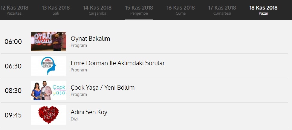 Son olarak sezon başında Tv8 ekranlarına transfer olan Adını Sen Koy, ilk olarak hafta içi 18:45'te ekranlara geliyordu. Yeni kanalında ve yeni saatinde beklenen ilgiyi görmeyen dizinin 12 Kasım 2018 tarihinden itibaren saat 12:30'da yayınlanacağı duyurulmuştu.