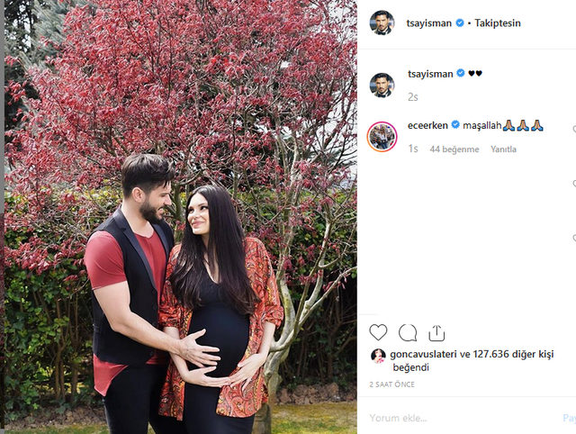 Almeda Abazi'nin son hamilelik günlerinde eşi Tolgahan Sayışman'ın sosyal medya hesabı üzerinden paylaştığı bir kare: