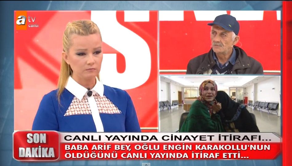 ATV ekranların en çok izlenen gündüz kuşağı programı Müge Anlı'da yine nefes kesen dakikalar yaşandı. Şüphelerin odağı olan baba Arif Karakollu bugün canlı yayın esnasında Müge Anlı'dan stüdyoda bulunan eşi Şanzimet Karakollu ve kızı Emine Aytekin'in dışarı alınmasını isteyerek, "Müge hanım, bunlar dışarı çıksın. Herşeyi anlatacağım!" dedi. Stüdyo birden buz kesti. Arif Karakollu'nun itiraf etmesi için anne ve kız dışarı alındı.