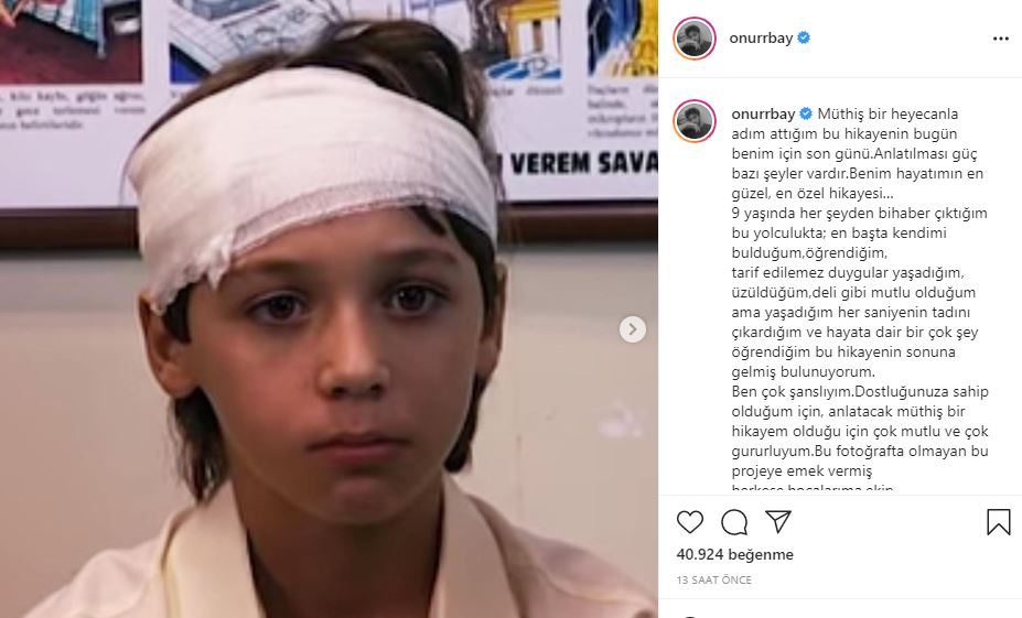 "Müthiş bir heyecanla adım attığım bu hikayenin bugün benim için son günü.Anlatılması güç bazı şeyler vardır.Benim hayatımın en güzel, en özel hikayesi… 9 yaşında her şeyden bihaber çıktığım bu yolculukta; en başta kendimi bulduğum,öğrendiğim, tarif edilemez duygular yaşadığım, üzüldüğüm,deli gibi mutlu olduğum ama yaşadığım her saniyenin tadını çıkardığım ve hayata dair bir çok şey öğrendiğim bu hikayenin sonuna gelmiş bulunuyorum. Ben çok şanslıyım.Dostluğunuza sahip olduğum için, anlatacak müthiş bir hikayem olduğu için çok mutlu ve çok gururluyum.Bu fotoğrafta olmayan bu projeye emek vermiş herkese,hocalarıma,ekip arkadaşlarıma,oyuncu arkadaşlarıma, bu hikayenin yaratıcılarına, bütün Arka Sokaklar ailesine teşekkürü borç bilirim. Şimdi yeni hikayeler yaşamanın, yeni yollara çıkmanın heyecanını yaşarken; kalbimde, aklımda her zaman beni gülümseten, bana şanslı olduğumu hissettiren anılarımız olacak.Hayatımı güzelleştirdiğiniz için hepinize kalpten teşekkür ediyorum.Çok özelsiniz.Eyvallah."