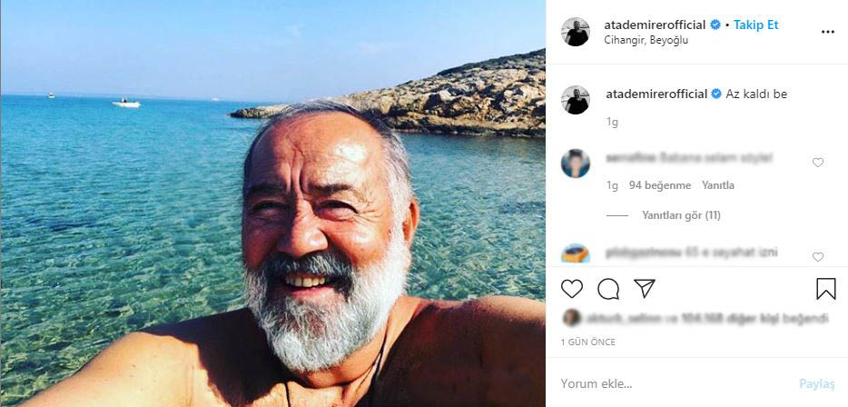 Şarkı söylemek, oyunculuk, komedyenlik gibi bir çok alanda kabiliyetli, on parmağında on marifet olan Ata Demirer, sosyal medyadan yaptığı birçok paylaşımıyla tebessüm ettirmeye devam ediyor. Salgın sebebiyle ev karantinasında olan Demirer, durumuyla alakalı bilgileri sosyal medya hesaplarından takipçileri ile paylaşıyor. Popüler bir mobil uygulamayla yaşlandırılmış bir fotoğrafını paylaşan Demirer, fotoğrafın altına 'az kaldı be' notunu düştü. Yaşlı haliyle bile Demirer’in karizma olduğu yorumları yapıldı. Ata Demirer’in paylaşımı binlerce yorum yüzbinlerce beğeni aldı. Demirer'in yaşlı hali ise Prof. Dr. İlber Oltaylı ve usta oyuncu Çetin Tekindor'a bezetildi.