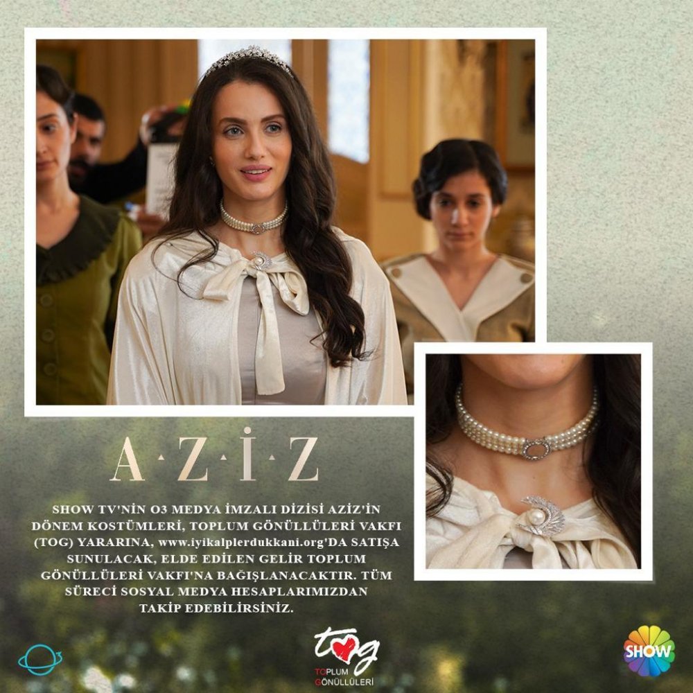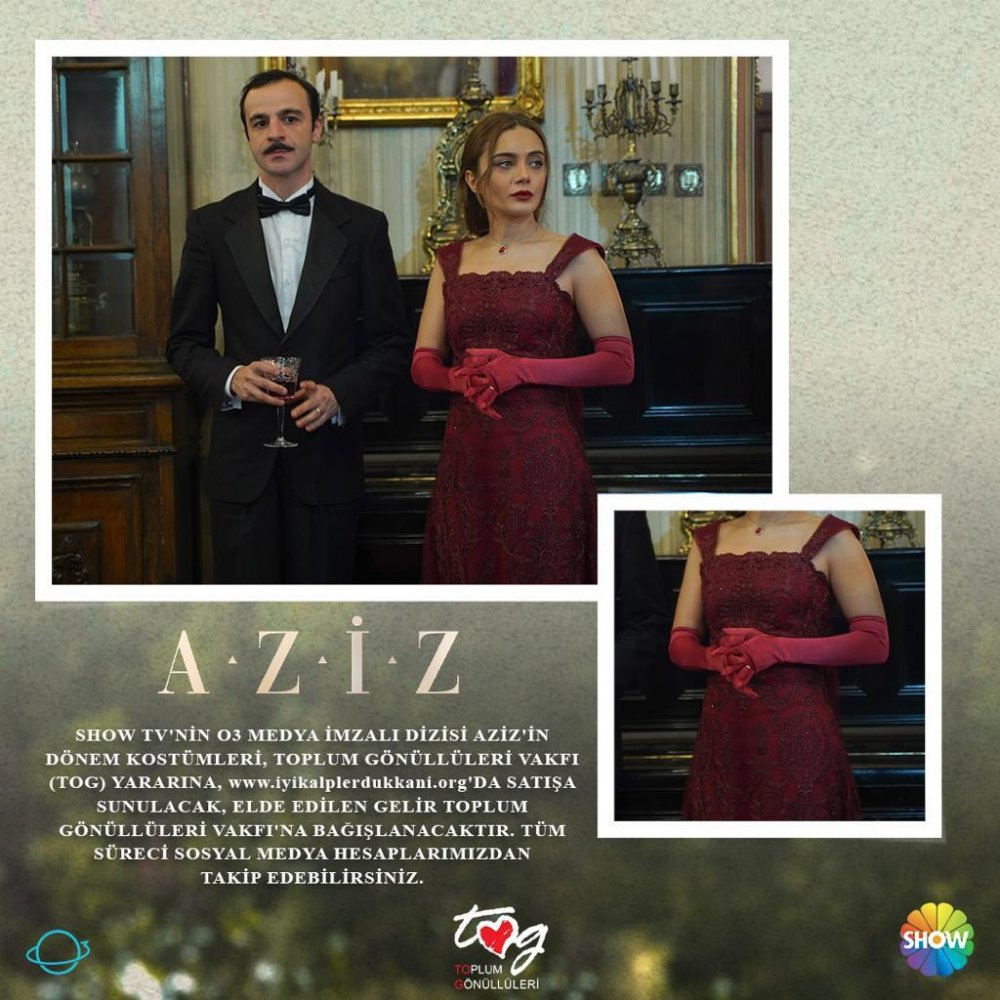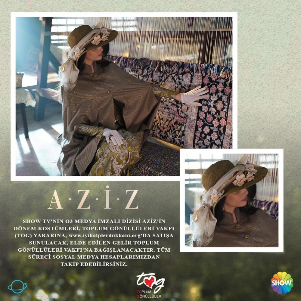 Aziz’in 17 Aralık Cuma günü yayınlanan son bölümde katıldığı davette Damla Sönmez’in can verdiği Dilruba karakterinin giydiği bordo gece kıyafeti, İman Elbani’nin hayat verdiği Prenses Fevziye’nin tacı ve şapkası, Simay Barlas’ın oynadığı Efnan’ın elbisesi, Ayten Soykök’ün can verdiği Handan’ın gri gece elbisesi ilk başta satışa konuldu. Elde edilecek gelir, TOG Toplum Gönülleri Vakfı’nın eğitim fonuna aktarılacak. Okumak isteyen ancak kitap, defter alamayan kalacak yer bulmayan öğrencilere aktarılacak olan fon sayesinde ülkemizin okuyan kendini geliştiren, aydınlık beyinli ve vizyonlu gençleri yetişmiş olacak.