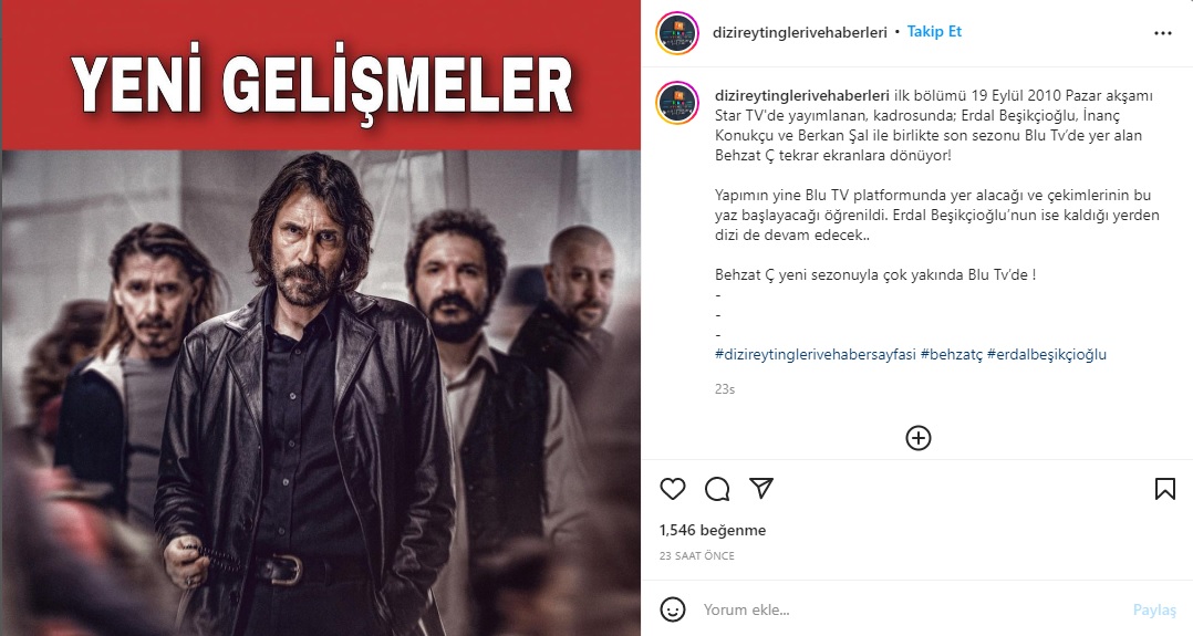 Çok yakında BluTV için yeniden Behzat Ç.’nin çekileceğini hem de aynı kadronun yer alacağını söyleyen Erdal Beşikçioğlu gazetecilere yaptığı açıklamada şu sözleri söyledi: ‘’Ufak tefek yeni kadromuz da olacak. Bizi ikna etmek hiç zor değil. Yazılı bir metin içerisinde gördüğünüz zaman hikayeyi, o sizi etkiliyorsa bütün sanatçılar için yeterlidir’’ dedi.