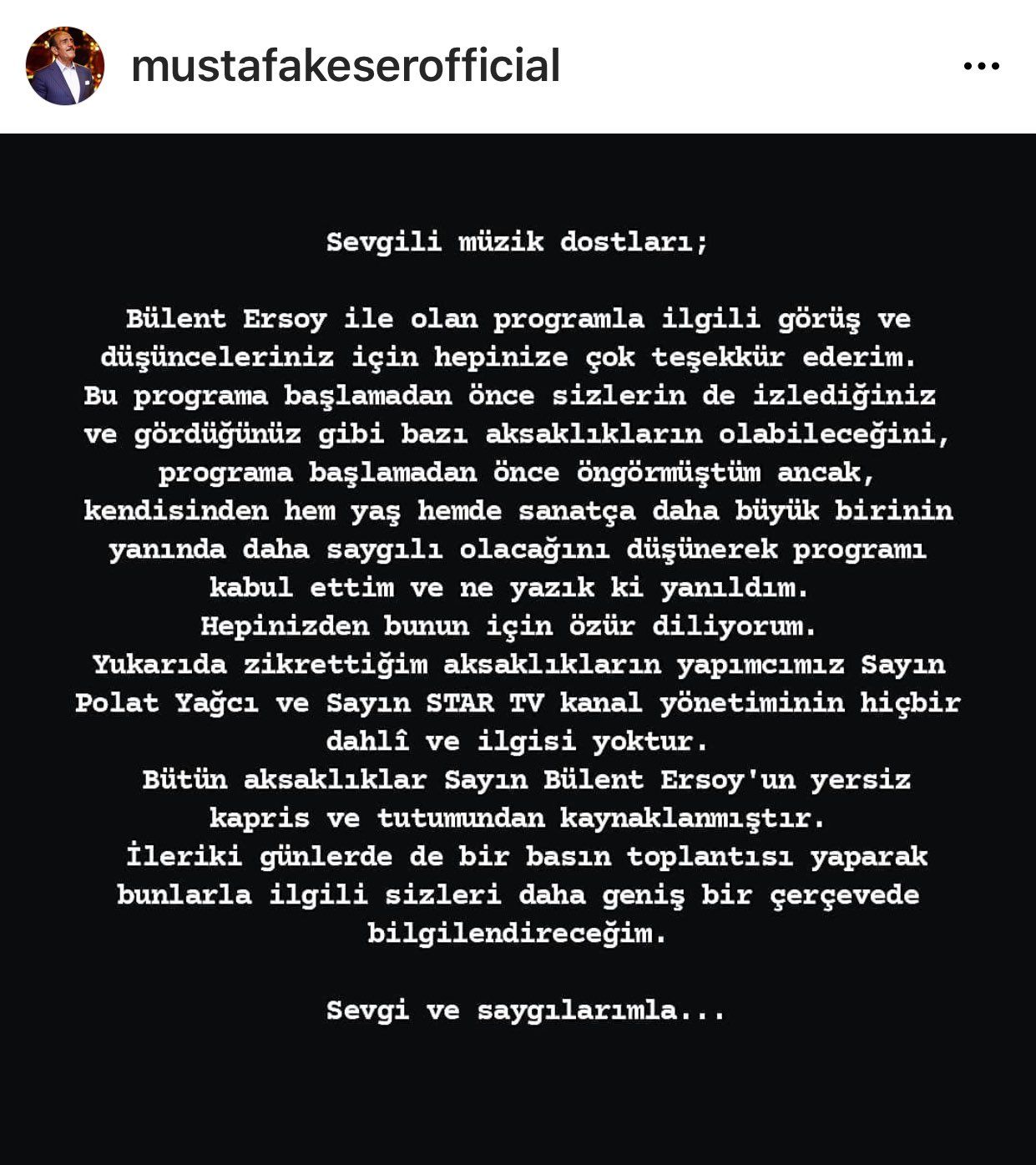 Büyük iddialarla tanıtımı yapılan " Benzemez Kimse Bize" programı başladığıyla bitmesi bir oldu. Star TV'de tantanalı tanıtımı yapılan ve ikinci bölümyle birlikte tartışmalara sebep olan müzik programının ömrü kısa sürdü. Program daha başlamadan birintihar olayı ile sarsılmış ve gözler Bülent Ersoy'açevrilmişti. Mustafa Keser'in Bülent Ersoy'la beraber yaptığı 'Benzemez Kimse Bize' programı Star TV yönetimi tarafından hiçbir açıklama yapılmadan yayından kaldırıldı.