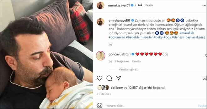 5 gün önce ilk kez baba olmanın heyecanını hayranlarıyla paylaşan Emre Karayel, o anki duygularını şöyle ifade etmişti: “Zamanın durduğu an. Bebekler enerjinizi hissediyor derlerdi de inanmazdım. Oğlum ağladığında ona ‘babacım yanındayız annen baban seni çok seviyoruz korkma’ diyorum, susuyor yeminle”