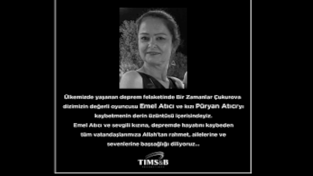 Bir Zamanlar Çukurova dizisinde Şermin karakterine hayat veren ve dizinin etkili oyuncuları arasında yer alan başarılı oyuncu Emel Atıcı Türkiye’yi derinden sarsan depremde hayatını kaybetti. Son olarak Bir Zamanlar Çukurova dizisinde rol alan oyuncunun ve kızının kaybını duyuran yapım şirketi Tims & B Yapım “ülkemizde yaşanan deprem felaketinde Bir Zamanlar Çukurova dizimizin değerli oyuncusu Emel Atıcı ve kızı Püryan Atıcı’yı kaybetmenin derin üzüntüsü içerisindeyiz. Emel Atıcı ve sevgili kızına, depremde hayatını kaybeden tüm vatandaşlarımıza Allah’tan rahmet, ailelerine ve sevenlerine baş sağlığı diliyoruz” ifadeleri kullanıldı. Ünlü oyuncunun hayatını kaybettiği haberleri kısa sürede sektörde büyük üzüntüye sebep oldu ve magazin ve internet haber sitelerinde haberleri yayınlanmaya başlandı.