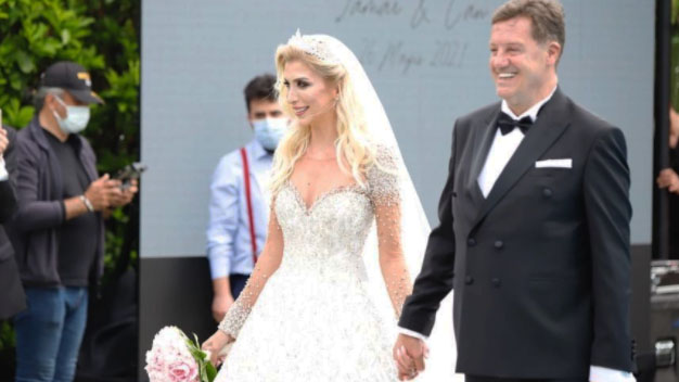 Can Tanrıyar ile dünya evine giren Türkiye’nin en eski müzik aletleri toptancısı Oner Müziğin sahibi Haçik Oner’in büyü kızı Tamar Oner’in nikah töreninde giydiği görkemli gelinlik ise dillerden düşmedi. Tamar Oner’in giydiği gelinlik ünlü modacı Gülşah Saraçoğlu tarafından hazırlanırken gelinliğin değerli taşlarla süslendiği ve bu değerli taşlarla işleme sonrasında toplam ağırlığının 30 kilo olduğu öğrenildi. Ayrıca gelinliğin hazırlanmasının yaklaşık bir ay sürdüğü ifade edildi. Gayet şık ve görkemli olan Tamar Oner ve Can Tanrıyar çiftinin mutlulukları gözlerinden okunurken çiftin nikah töreninin ardından balayına çıktıkları öğrenildi. Nikah töreninde çiftin aileleri de gayet mutlu göründüler. Biz de ünlü çifti tebrik ediyor ve mutluluklarının bir ömür boyu sürmesini temenni ediyoruz.