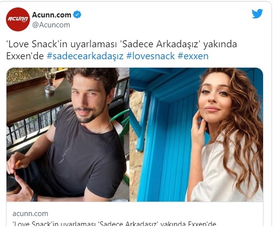 ‘Love Snack’ uyarlaması ile yurt dışında büyük ilgi gören dizi Sadece Arkadaşız’ın yönetmen koltuğunda Emre Erdoğdu’nun oturduğu, senaryosunu Çok Güzel Hareketler Bunlar programının ilk sezon oyuncularından Zeynep Koçak kaleme alıyor. Amerikan yapımı Love Snack, dizisi İtalya da 2017 2018 yıllarında 2 sezon ve 60 bölüm olarak izleyiciler buluşmuş ve büyük beğeni toplamıştır. Sadece Arkadaşız dizisinin oyuncu seçmeleri de devam ediyor.
