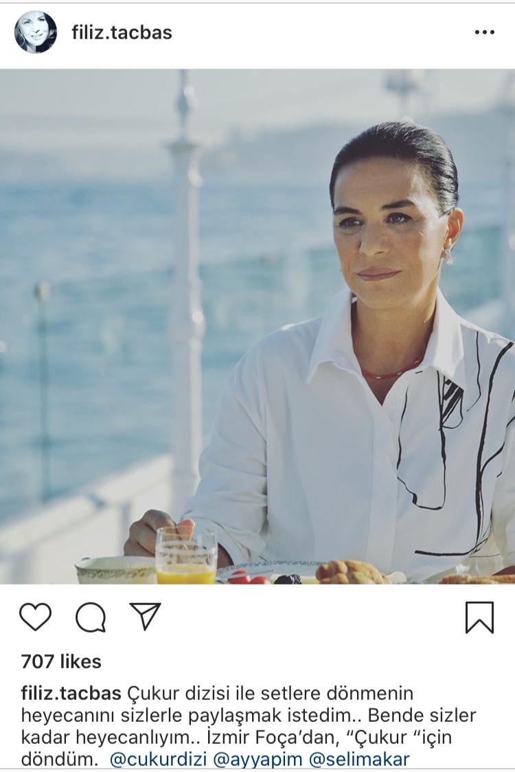 Arka Sokaklar dizisinde 6 sezon boyunca Rıza Baba'nın eşi Ayla karakterini canlandıran başarılı oyuncu Filiz Taçbaş Çukur dizisine katılıyor. Sosyal medya hesabı İnstagram üzerinden paylaşım yapan oyuncu ''Çukur dizisi ile setlere dönmenim heyecanını sizlerle paylaşmak istedim. Bende sizler kadar heyecanlıyım. İzmir Foça’dan Çukur için döndüm.'' notunu düşerek güzel haberi sevenlerine duyurdu. Hangi karakteri canlandıracağı şimdiden merak edilen Taçbaş dizi setinde çekilen fotoğrafını paylaştı.