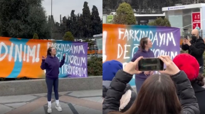 Demet Evgar, tek başına gerçekleştirdiği eylemini baştan sona videoya çekerek sosyal medya hesaplarında paylaştı. Evgar’ın protestosuna halkta alkışlarla destek verdi.