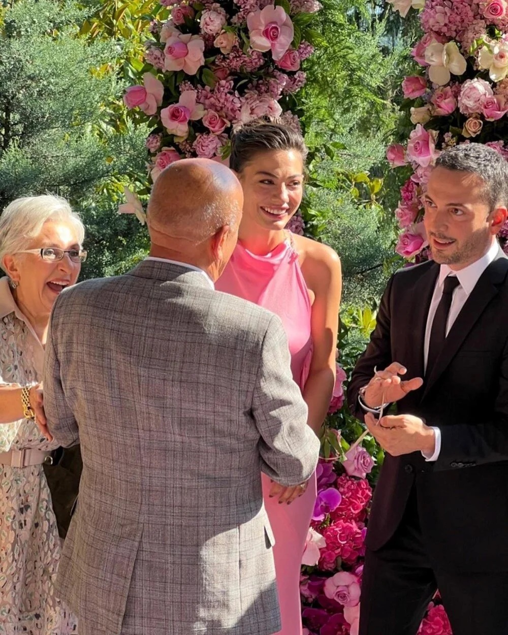Nişan yüzükleri ailelerin ve yakın arkadaşların katıldığı tören ile takıldı. Aile arasında düzenlenen törenle evlilik yolunda ilk adımı atan ünlü çift, kahvelerin içilmesinin ardından yüzük merasimi için hazırlanan Demet Özdemir bu kez ise pembe renkli saten açık sırt detaylı bir elbise tercih etti. Aile arasında gerçekleşen törenle çift nişan yüzüklerini taktı.