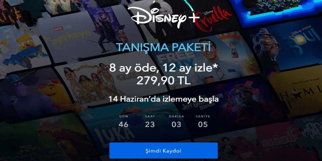 14 Haziran’da Disney Plus (Disney+) Türkiye’nin en ünlü isimleriyle anlaşmalar yapıyor. İlk anlaşmasını Engin Akyürek’le yapan Disney Plus ardından Aras Bulut İynemli, Can Yaman, Şahan Gökbakar, Pınar Deniz, Buğra Gülsoy, Halit Ergenç, Eda Ece, Cansu Dere, Yılmaz Erdoğan, Ata Demirer, Pınar Deniz, Demet Özdemir, İrem Helvacıoğlu, Hande Erçel ve son olarak pop star Tarkan gibi Türkiye’nin yıldız isimlerini kadrosuna kattı. Türkiye’de yayın hayatına başlayacak olması sebebiyle üye olacaklara tanışma paketi adıyla yeni bir yıllık paket fiyatı belirledi. Üyelere erken kayıt indirimi yapacağını açıklayan platform, ön kayıt kampanyası hazırlayarak, 14 Haziran’dan önce kayıt olarak 26 Haziran’a kadar satın alma işlemi gerçekleştirenlere, 8 aylık ücret karşılığında 12 aylık hizmet vereceğini duyurdu. Ayrıca platformun yeni bir tanıtım videosu da yayınladı. İşte Disney Plus indirimli fiyatlandırma tarifesi hakkında detaylar...