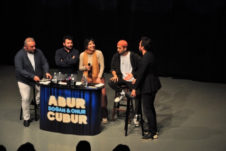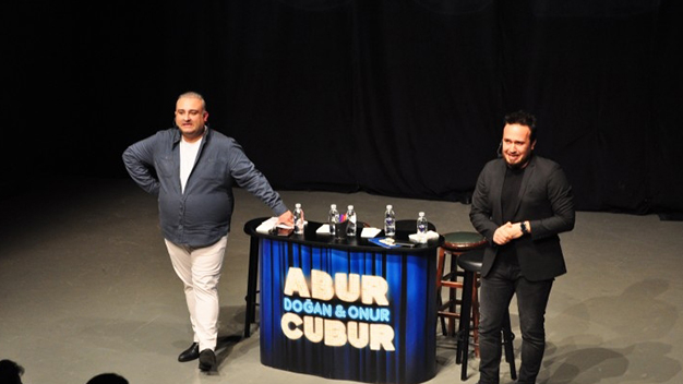 Başarılı ve sevilen oyuncular Doğan Akdoğan ve Rüştü Onur Atilla’nın 2017’den beri seyircisiyle abur cuburlayan talk show’u ‘Abur Cubur Show’ turne yapıyor. Şehir şehir dolaşıyor, sahne almaya, talk show tadındaki oyunları ile izleyenleri kahkahaya boğmaya devam ediyor. Güldür Güldür Show’un ‘İbrahim’ karakteri ile tanınan, onun dışında ‘Herkes Tek Başına Ölür’, ‘Onların Hikayesi’, ‘Tanıyor Olabileceğin Kişiler’, ‘Düğünde Panik’ tiyatrolarının oyuncusu Rüştü Onur Atilla ile sunucu ve oyunculuk yapan, ‘Buyur Bi de Burdan Bak’ Show ile adını duyurmuş, ‘Herkes Tek Başına Ölür’, ‘Vanya, Sonya, Maşa ve Spike’, ‘Tamamen Doluyuz’, ‘Ah Smyrna’m, Güzel İzmirim’, ‘Tanıyor Olabileceğin Kişiler’, ‘Düğünde Panik’ gibi tiyatro oyunlarında sahne alan ve daha birçok projede bulunan Doğan Akdoğan yer alıyor. BKM mutfak oyuncularından olan ikili şimdide birlikte sundukları ‘Abur Cubur Show’ ile izleyici karşısına çıkıyor. Aynı zamanda ikilinin youtube de ‘Aburcubur TV’ adlı kanalları bulunuyor. İşte, Talk Show tadındaki ‘Abur Cubur Show’ ile ilgili detaylar…