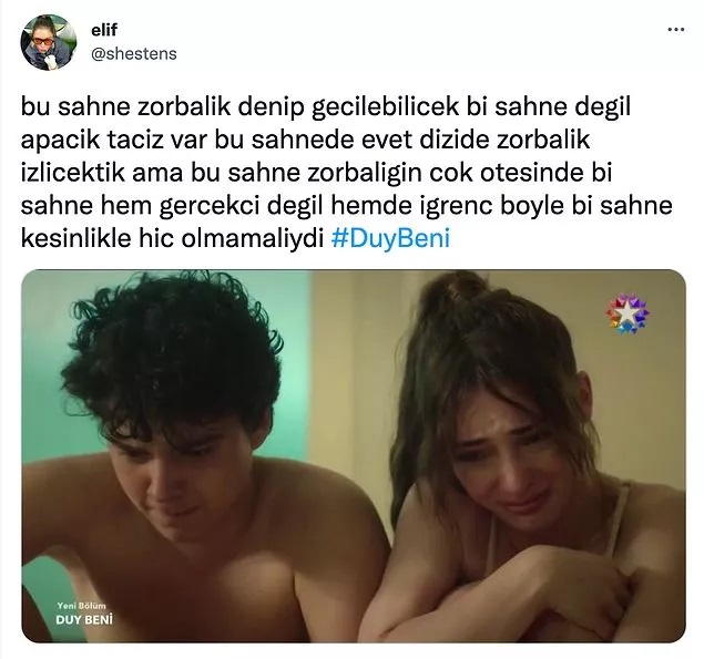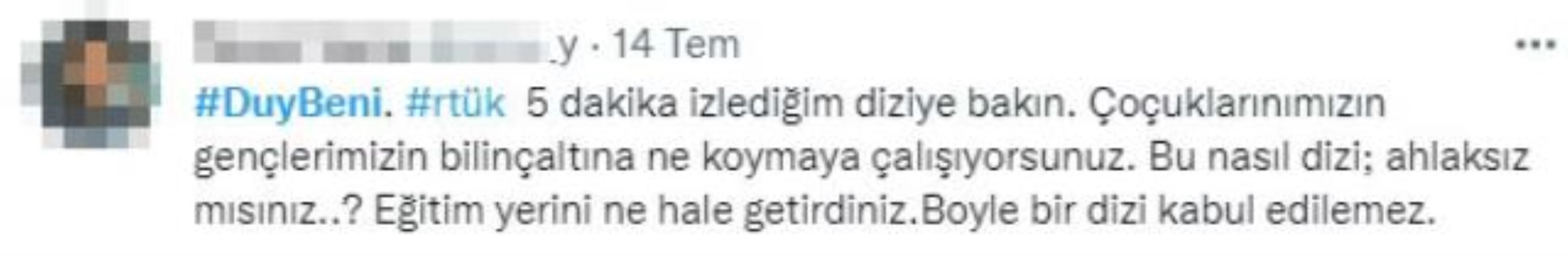 O sahneler çok konuşuldu, Duy Beni dizisinde iki lise öğrencisine arkadaşları tarafından yapılanlar izleyicileri öfkelendirdi. Star TV’de ekrana gelen Duy Beni’de, orta sınıf ailelerin çocuklarından, bursla özel okulda okuyan iki genç, kendisini okulda istemeyen diğer arkadaşları tarafından herkesin içinde soyularak kamera kaydına alındı. O şiddet dolu sahneler kısa sürede Twitter’da gündem olurken, tepkiler de beraberinde geldi. Zorbalık içeren o sahnelere kullanıcılar, ‘Çocukların bilinçaltına ne koymaya çalışıyorsunuz?’ ve ‘Senaristler ne yaptığının farkında mı?’ yorumlarında bulundu.