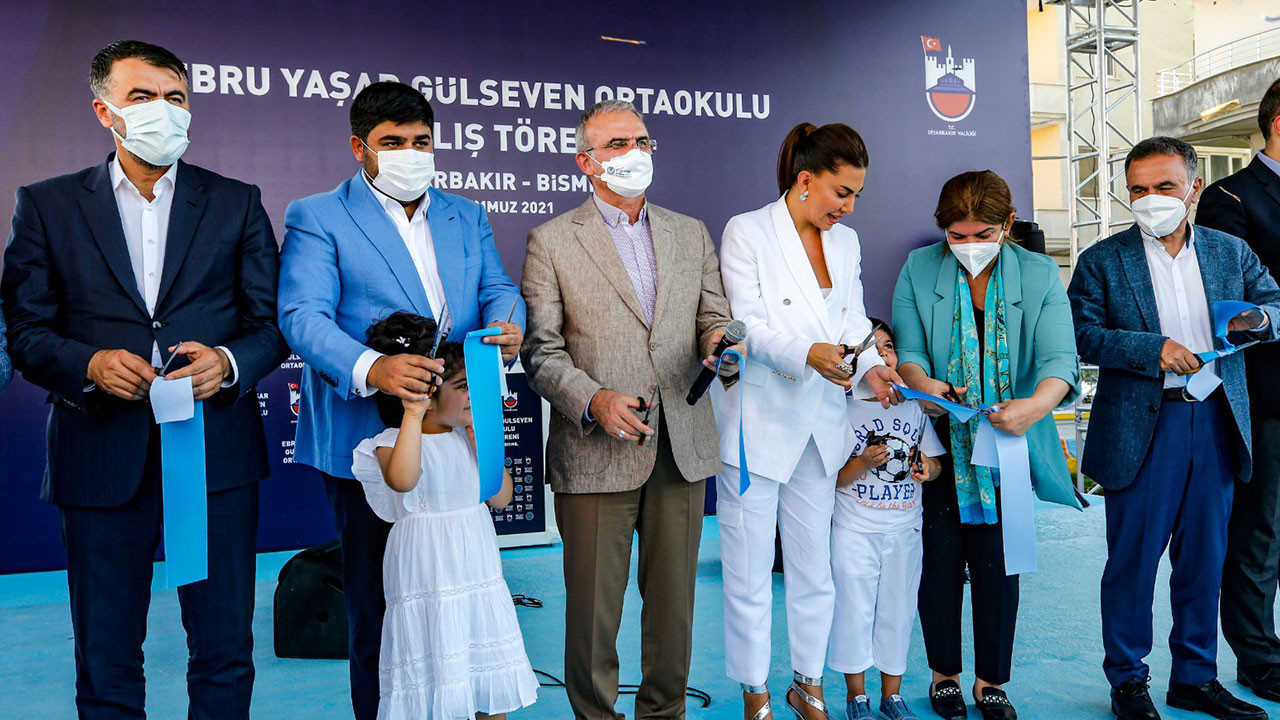 Çoşkulu bir tören yapılan Ebru Yaşar Gülseven Ortaokulu'nun açılışında davul zurna da hazır bulundu. Diyarbakır Valisi Münir Karaloğlu ve birçok siyasi ve bürokratik ismin bulunduğu törene çok sayıda Bismilli de katıldı. Ebru Yaşar ve eşi 3N Medya Yönetim Kurulu Başkanı Necati Gülseven tarafından yapılan okula birçok siyasi parti lideri de çiçek ve telgraf gönderdi. Tv100'de yer alan habere göre MHP Genel Başkanı Devlet Bahçeli bir telgraf gönderirken, İYİ Parti Genel Başkanı Meral Akşener ve CHP Genel Başkanı Kemal Kılıçdaroğlu açılışı çiçek göndererek tebrik etti.