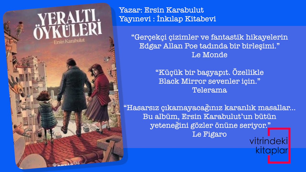 Son yirmi yıldır çeşitli dergilerde Ersin Karabulut’un yazıp çizdiği Yeraltı Öyküleri, Fransa’da yoğun ilgi gören iki kitap haline geldikten sonra, çizerin en sevdiği öykülerden oluşan seçkisiyle nihayet Türkçe olarak sevenleriyle buluşuyor.’’