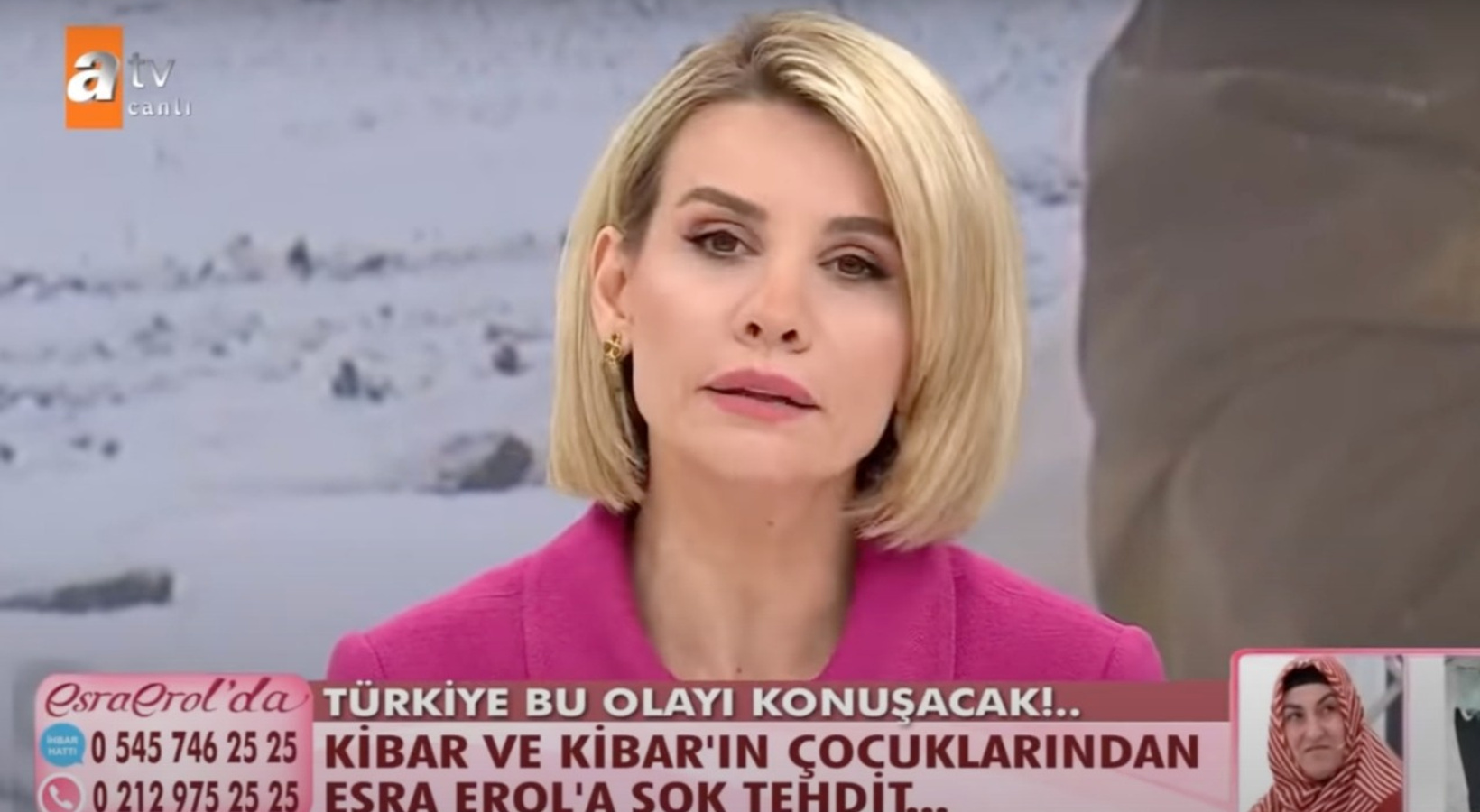 15 Mart günü Atv’de yayınlanan Esra Erol’da programı Esra Erol’un sunumuyla başladı. Daha önce ortaya çıkardığı evlilik dolandırıcılığından sonra Esra Erol, 16 yıl önce işlenen cinayet olayını irdeledi. Programa katılan Halil İbrahim Bey, birkaç ay önce evlendiği Kibar Ünvar isimli kadının 85 bin lira parasını alıp kayıplara karıştığını söyledi. Ancak olayın gerçek boyutunu ortaya çıkaran Esra Erol, Kibar Hanım'ın eşinin 16 yıl önce şüpheli bir şekilde hayatını kaybettiğini delilleriyle ortaya koydu. İşte ne olduysa ondan sonra oldu. Olayı ortaya çıkaran Esra Erol, Kibar Hanım ve çocukları tarafından tehdit edildi. Ünlü sunucu Esra Erol, canlı yayın sırasında olayı tüm detaylarıyla anlatarak aldığı tehditleri bir bir açıkladı. Şimdi herkes Kibar Hanım ve çocuklarının peşine düşen emniyet yetkililerinden gelecek habere odaklandı. Canlitv platformu olarak Esra Erol’a geçmiş olsun diyoruz.
