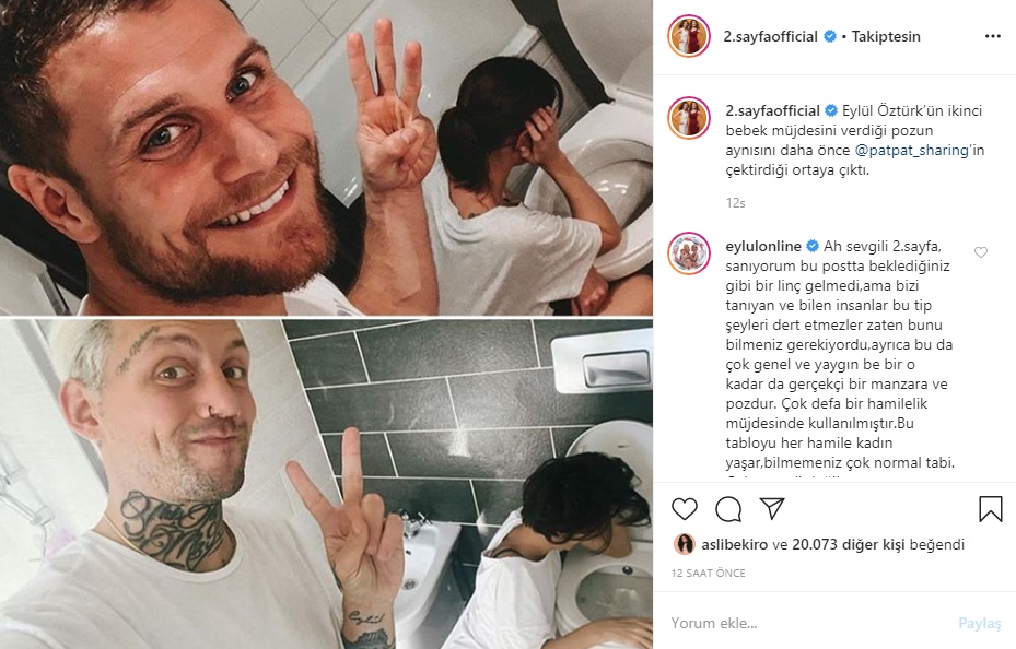 2. Sayfa programının sunucuları, Eylül Öztürk'ün paylaşımı için, "Bu poz çok genel, yaygın ve bir o kadar da gerçekçi bir manzara ve pozdur. Çok defa bir hamilelik müjdesinde kullanılmıştır. Bu tabloyu her hamile kadın yaşar, bilmemeniz çok normal tabi. Çok önemli değil ama zaten bundan daha fazlasını size verebilecek bir yaşantımız yok bizim. Ancak bunlarla idare edin artık ne yapalım" şeklinde yaptığı açıklamalara tepki gösterdi. Hatta açıklamada geçen "Bu tabloyu hamile kadınlar bilir, bilmemeniz çok normal" sözleri ile hamile kalamayan bir çok bayanın kalplerini kırdıklarını ifade etti. Eylül Öztürk bu duydukları karşısında adeta deliye döndü. Söylediklerinin çarpıltıldığını ve linç ettirilmeye çalışıldığını söyleyen Eylül Öztürk, sessizliğini sosyal medyadan yaptığı açıklamalar ile bozdu.