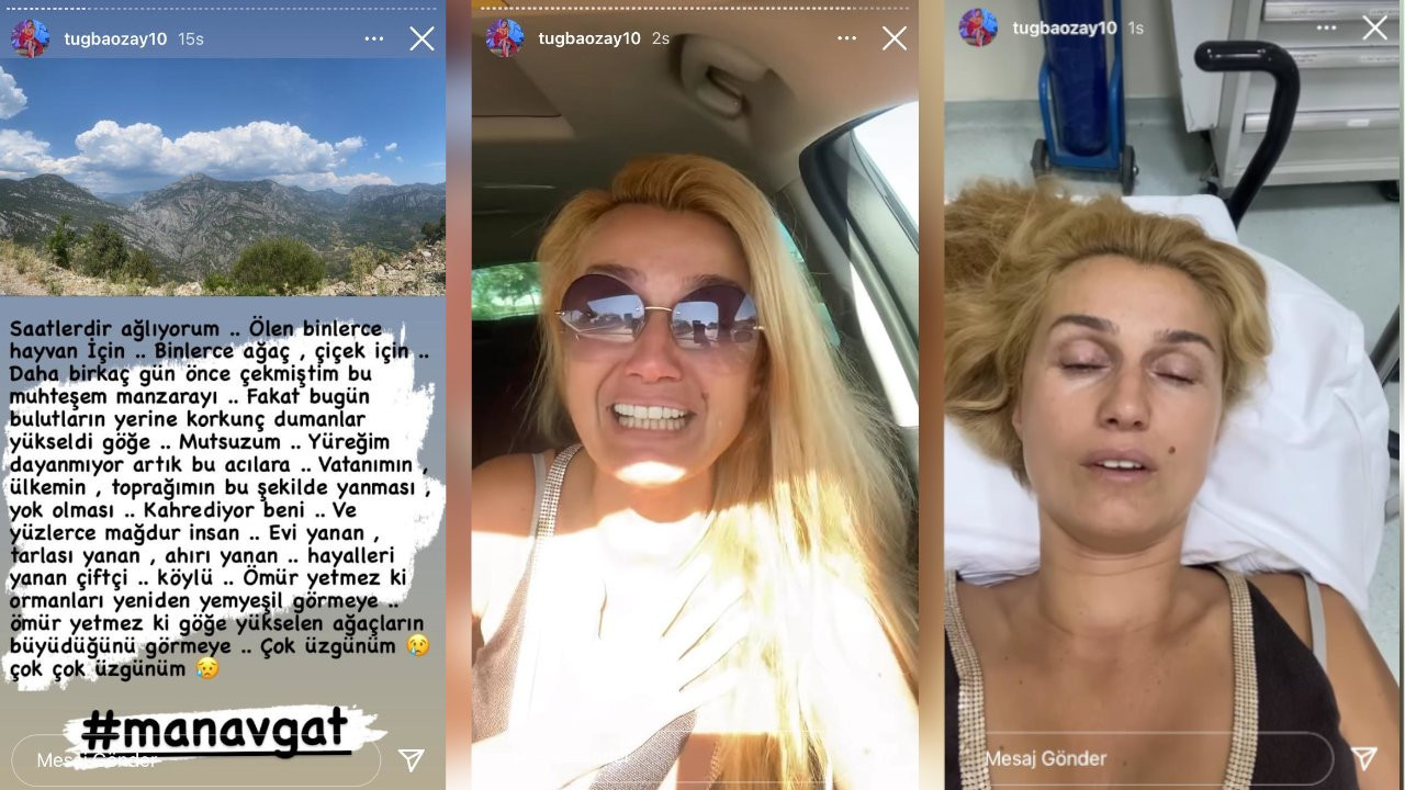 Türkiye 3 gündür alevlerle boğuşuyor. 71 ilde çıkarılan orman yangınları mal ve can kaybına yol açıyor. İki gün önce gözyaşları içinde yanan çiftliğini gösteren ve yalvararak yardım isteyen ünlü manken Tuğba Özay, felç geçirdiğini söyleyerek hastaneye kaldırılmıştı. Sosyal medyadan paylaşım yapan ünlü manken 'Kollarım ve ayaklarım tutmuyor, felç geçirdim' diyerek sevenlerini üzmüştü. Geçirdiği felci iki günde atlatan Tuğba Özay hızını alamamış olmalı ki bugün Şirinevler'de bulunan bir kuyumcunun açılışına katıldı. Manavgat'ta bulunan çiftliğini yangın nedeniyle kaybetme tehlikesi yaşayan ve ağlayarak ölen atının resmini paylaşan ünlü manken sinir krizi geçirerek yetkililerden yardım istemişti. Bugün kuyumcu açılışına katılan Tuğba Özay'ı gayet sağlıklı ve neşeli görenler önce şok oldu, ardından da sosyal medyadan tepki gösterdi. İnsanların aklıyla dalga geçmeyin, diyen vatandaşlar 'Kollarım ve ayaklarım tutmuyor, felç geçirdim' diyen Tuğba Özay'ın bir kuyumcunun açılışına katılmasına yoğun tepki gösterdi. Sosyal medya kullanıcıları Özay’ı halkı kandırmakla suçlayarak "Dün felç geçirdim diye ağlıyordum, bugün güle oynaya açılıştasın’, ‘İnsanların hisleriyle oynamak bu kadar kolay mı’ , ‘Bu nasıl vicdan çok yazık’ şeklinde yorumlarda bulundular.