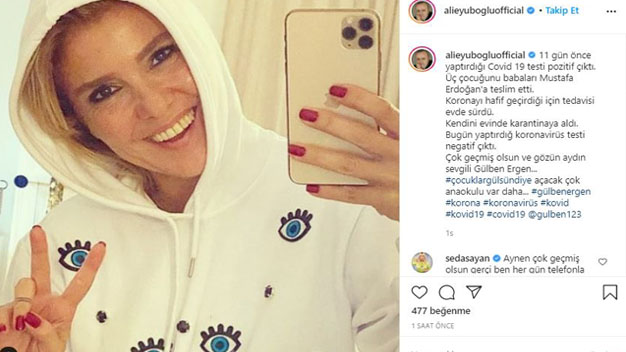 Ünlüler dünyasından bir isim daha koronavirüse yakalandı ve tedavi sürecinin ardından sağlığına kavuştu. Ünlü şarkıcı Gülben Ergen’in de son bir yılın en ölümcül hastalığı olan koronavirüse yakalandığı öğrenildi. Menajeri Özgür Aras’tan alınan bilgilere göre koronavirüs testi 10 gün önce pozitif çıkan ünlü isim tedavisine evde devam etti. 10 günlük tedavisinin ardından son testleri negatif çıkan ve hastalığı hafif bir şekilde atlatan ünlü isim bu süreçte yakınlarını korumak için azami dikkat etti. Çocuklarıyla birlikte yaşayan ünlü isim bu süreçte hastalığı çocuklarına bulaştırmamak için tedbir aldı ve çocuklarını babaları Mustafa Erdoğan’ın yanına gönderdi. Son çıkan testten sonra normal hayata dönmeye hazırlanan Gülben Ergen’e pek çok dostu, takipçileri ve sevenlerinden geçmiş olsun mesajları geldi.