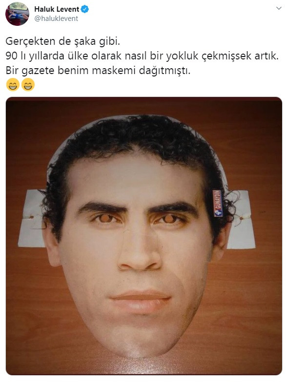 “Gerçekten de şaka gibi. 90’lı yıllarda nasıl bir yokluk çekmişsek artık. Bir gazete benim maskemi dağıtmıştı.”