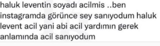 Bu isimlere bir de Haluk Levent eklendi. Kurduğu AHBAP Platformu sayesinde afet dönemlerinde binlerce insana yardım ulaştıran ve herkesin gönlünü fetheden ünlü şarkıcının soyadıyla ilgili detay ortaya çıktı. Herkes ünlü şarkıcının soyadını Levent olduğunu sanıyordu. Oysaki Levent'in soyadı değil sanatçının mahlası olduğu anlaşıldı. Sosyal medyadaki bir kullanıcı tarafından fark edilen olay, ünlü şarkıcının sosyal medya hesabındaki "Acil" ibaresine vurgu yapmasıyla belli oldu.