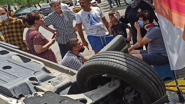 Ünlü oyuncu İlker Aksum’un dün Adana’da geçirdiği kaza yerinde iş yeri bulunan bir vatandaş olayı anlattı. Mustafa Öztürk adındaki vatandaş işyerindeyken büyük bir gürültü duyarak dışarı çıktığını belirtti ve “dinamit patlaşmış gibi çok kötü bir sesti. En son iki takla atarken araç ters döndü. Sonrasında koştuk, kapıyı açtım. Ben de bir şey yok dedi. Bıçağı alıp kemeri kestik, sonrasında çıkarttık. Durumu iyiydi, oturdu elini yüzünü yıkadık. Dizleri mordu, yüzünde kanamalar vardı. O şekilde çıkarttık. Ambulans geldi, binerken kendisinde bir şey olmadığını söyledi. Sağlık ekibi yinede götürmek istedi. Sağlık ekibi kontrol amaçlı hastaneye götürdü” ifadelerini kullandı. İlker Aksum’un kaza yaptığı araç ise kullanılamaz hale geldi.