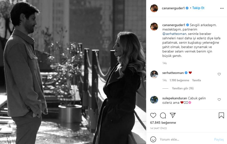 Menajerimi Ara dizisinin güzel oyuncusu Canan Ergüder sosyal medya hesabından yaptığı iki farklı paylaşımla hem teşekkür hem veda etti. Rol arkadaşı Serhat Teoman için de bir paylaşım yapan Ergüder, "Sevgili arkadaşım, meslektaşım, partnerim serhatteoman, seninle beraber sahneleri nasıl daha iyi ederiz diye kafa patlatmak, senin kuşbakışı yeteneğine şahit olmak, beraber oynamak ve beraber selam vermek benim için büyük şanstı" ifadelerini kullandı. Duygusal anların yaşandığı Menajerimi Ara ekibi iki çalışma arkadaşına güzel bir veda organizasyonu düzenledi.