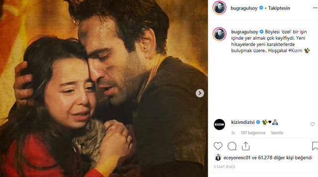 Dizinin ana karakterlerinden biri Demir'e hayat veren başarılı oyuncu Buğra Gülsoy ise: "Böylesi ‘özel’ bir işin içinde yer almak çok keyifliydi. Yeni hikayelerde yeni karakterlerde buluşmak üzere.. Hoşçakal Kızım.'' diyerek projesine veda etti.