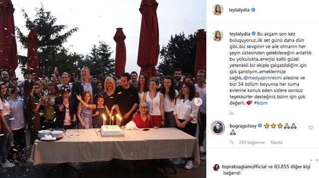 Dizide Candan karakterine hayat veren Leyla Lydia Tuğutlu dizi ekibiyle çektirdikleri bir fotoğrafı paylaşarak Kızım dizisine şu sözlerle veda etti: "Bu akşam son kez buluşuyoruz. İlk set günü daha dün gibi. Biz sevginin ve aile olmanın her şeyin üstesinden gelebileceğini anlattık bu yolculukta. Enerjisi kalbi güzel, yetenekli bir ekiple çalışabildiğim için çok şanslıyım. Emeklerinize sağlık..@medyapimresmi ailesine ve bizi 34 bölüm boyunca her cuma evlerine konuk eden sizlere sonsuz teşekkürler. Desteğiniz bizim için çok değerli"