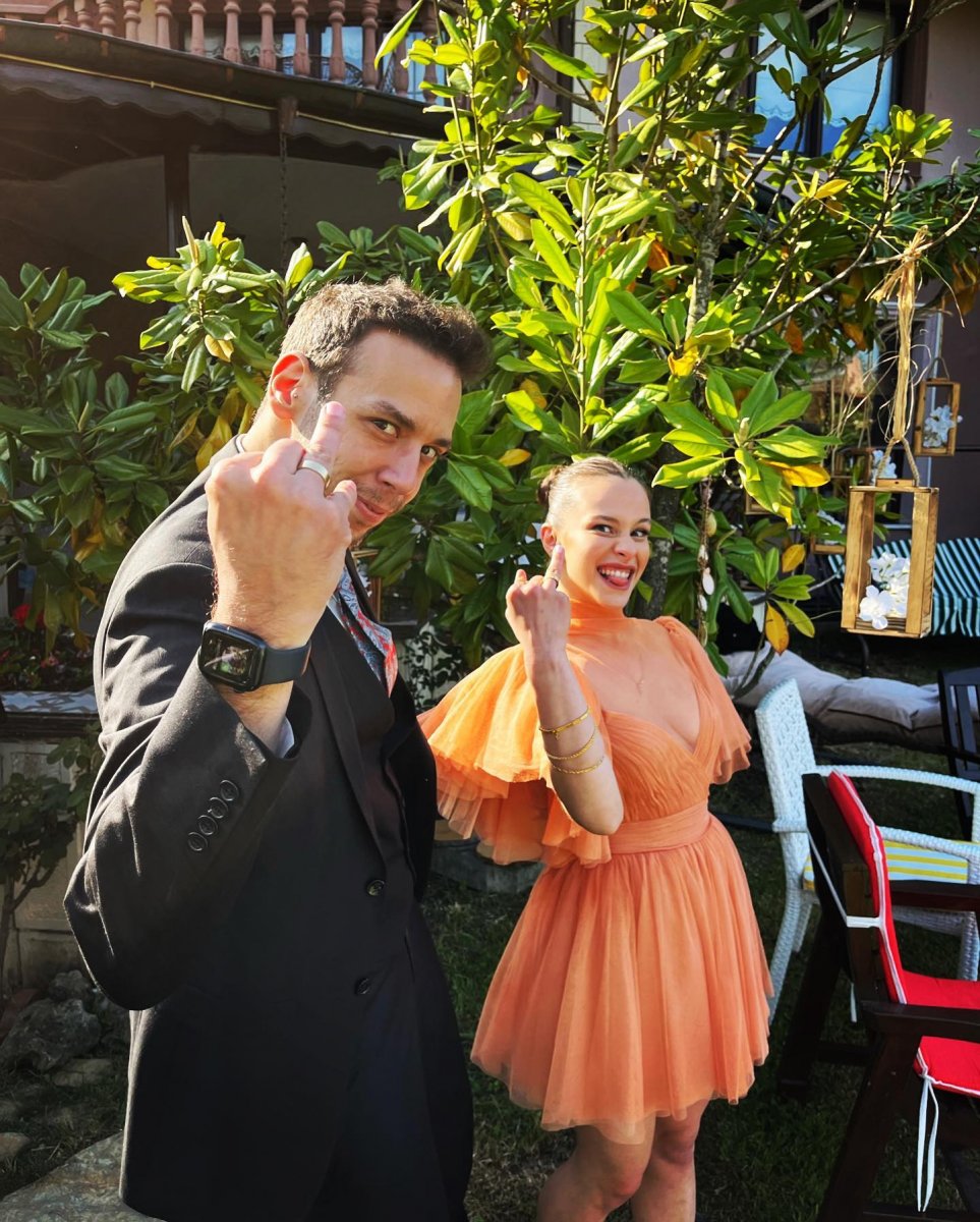 Çift bir süredir ilişkilerini gözlerden uzak sürdürdü. Gizem Katmer sosyal medya hesaplarında bile sevgilisiyle olan fotoğraflarını paylaşmıyorken, hiçbir magazin haberinde de yer almayan çifti bir anda birlikte görenler şaşkına döndü. Güzel oyuncu Gizem Katmer’in kardeşi Asya Katmer’in de ablasının nışan haberini İnstagram hesabından paylaştığı o postta gözlerden kaçmadı ‘’arkadaşlar benim çok değişik hissettiğim şeyler var ablamın evlenmesi gibi’’ sözleri ve Gizem Katmer’in Güçlü Aydoğdu ile nışanının ardından sosyal medya hesaplarından o anları paylaştığı fotoğrafları sosyal medyada TT olurken, magazin gündeminede bomba gibi düştü. İşte O nışandan kareler… Gizem Katmer ve Sevgilisi Güçlü Aydoğdu’nun Nışan pozları…