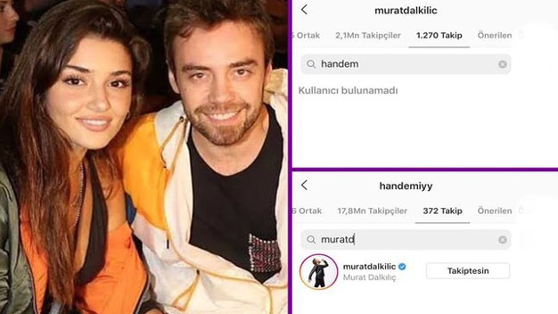 Şarkıcı Murat Dalkılıç ile oyuncu Hande Erçel daha önce bir süre birlikte olmuş ve ardından ikili ayrılmaya karar vermişlerdi. Bu ayrılığın ardından iki ünlü isim arkadaş kalacaklarını söyleyerek sosyal medya hesapları üzerinden birbirlerini takip etmeye devam etmişlerdi. Ancak ne olduysa geçtiğimiz günlerde oldu ve Murat Dalkılıç eski sevgilisi oyuncu Hande Erçel’i sosyal medya hesabından takip etmeyi bıraktı. Bunun sebebinin ne olduğu tam olarak anlaşılamazken Hande Erçel’in ise halan Murat dalkılıç’ı takip etmeye devam ettiği görüldü. Murat Dalkılıç’ın Hande Erçel’i takip etmeyi bırakmasının sebebinin ise halen aynı dizide rol aldıkları arkadaşı Kerem Bürsin’le olan fotoğraflarının olduğu ve Murat dalkılıç’ın bu fotoğrafları daha fazla görmek istemediği iddia edildi.