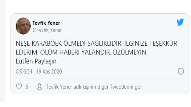 Bugün sosyal medyada hızla yayılan bir haber bir anda sosyal medya kullanıcılarının gündemine oturdu. Dedikodu niteliğinde olan ve gerçeği yansıtmaya habere göre Ünlü şarkıcı Neşe Karaböcek koronavirüsten dolayı hayatını kaybetmişti. Oysa iddia ve haber yalandı ve Neşe Karaböcek sağlıklıydı ve hayattaydı. Ancak sosyal medyada hızla yayılan haber o kadar çok ses getirdi ki pek çok sosyal medya kullanıcısı ünlü ismin gerçekten vefat ettiğini sanarak taziye mesajlarında bulunmaya başladılar. Ancak bu iddialar Neşe Karaböcek’in eşi Tevfik Yener tarafından yalanlandı ve ünlü ismin gayet sağlıklı olduğu ve hayatta olduğu açıklandı. Ancak bu durum bir kez daha sosyal medyanın güvenilirliğinin sorgulanmasına sebep oldu. Sık sık bu tür haberlerle özellikle ünlü isimler hakkında ölüm haberleri yapılıyordu.