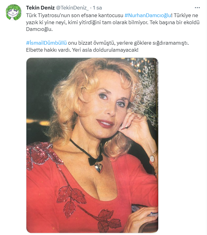 Açık hava sineması olan bir baba ile devlet operalarında terzilik yapan bir annenin çocuğu olan Nurhan Damcıoğlu daha 9 yaşında sanata ilgi duydu. Devlet Tiyatroları çocuk bölümünde tiyatro üzerine eğitim alan Damcıoğlu daha çocuk yaşlarda tiyatro oyunlarında yer almaya başladı. Kalp yetmezliği ile mücadele eden Nurhan Damcıoğlu’nun vefat haberini Tekin Deniz sosyal medya paylaşımıyla sanatseverlere duyurdu. “Türk Tiyatrosu'nun son efsane kantocusu #NurhanDamcıoğlu! Türkiye ne yazık ki yine neyi, kimi yitirdiğini tam olarak bilmiyor. Tek başına bir ekoldü Damcıoğlu.” Diyerek sosyal medya paylaşımı yapan Deniz’in bu paylaşımına kısa zamanda binlerce yorum yağdı. Bu yorumlardan birisi de “Bir efsane daha veda etti.Mekanın cennet olsun #NurhanDamcıoğlu” şeklinde paylaşım yapan Behzat Uygur oldu.