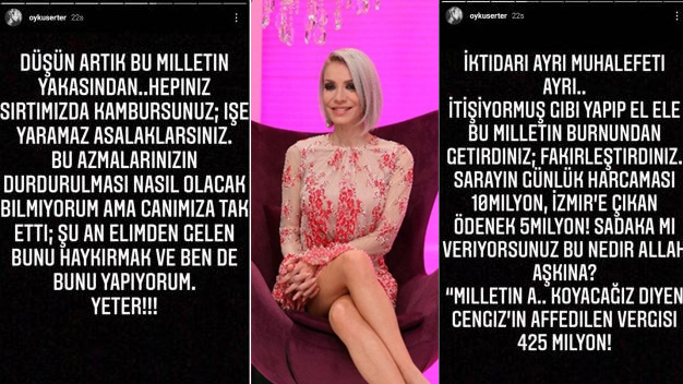 Sunucu Öykü Serter, 30 Ekim 2020'de gerçekleşen ve birçok binanın yıkılmasıyla 116 kişi hayatını kaybettiği İzmir depremi için hem iktidarı hem de muhalafeti eleştiren paylaşımlar yapmıştı. Depremde denetimsiz ve depreme dayanıksız binaların içerisinde bulunan binlerce kişi de yaralanmıştı. Öykü Serter, "Deprem vergileri nerede?" sorusunu sormuş ve yöneticilere "düşün yakamızdan" siteminde bulunmuştu. Sunucunun yaptığı paylaşımlar sebebiyle hakkında rapor hazırlansdığı ve İstanbul Cumhuriyet Başsavcılığı'na gönderildiği öğrenildi.