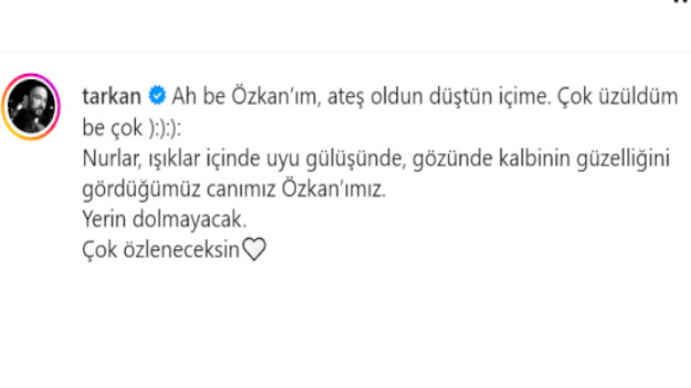 Müzik camiasının önde gelen isimlerinden biri olan sanatçı Özkan Uğur 69 yaşında hayata veda etti. Kanser hastalığı sebebiyle bir süredir yoğun bakımda bulunan ünlü isim ne yazık ki kurtarılamadı ve hayatını kaybetti. Özkan Uğur’un hayatını kaybetmesi sebebiyle pek çok isim taziye mesajları yayınlandı. Bu isimlerden biri olan Tarkan “Ah be Özkan’ın ateş oldun düştün içime. Çok üzüldüm be çok (:(: Nurlar ışıklar içinde uyu gülüşünde, gözünde kalbinin güzelliğini gördüğümüz canımız Özkan’ımız. Yerin dolmayacak. Çok özleneceksin” ifadelerini kullandı. Oyuncu Zafer Ergin ise paylaşımında “Sevgili Özkan’ı kaybettik. O’nunla birçok güzelliği de kaybettik. Nurlar içinde uyusun” ifadelerini kullandı. Şarkıcı Murat Boz ise mesajında “Yok ki diyecek bir şey, düğümlendi boğazım. Ah be Özkan abi… Allah rahmet eylesin, ışıklar içinde uyu” ifadelerini kullandı. Şarkıcı Yeşim Salkım ise paylaşımında “Ah benim canım, güzel partnerim. Eşkıya’mın en güzel anısı şarkılarımın hocası. Sen şimdi gittin mi? Özkan Uğur şahane insan şahane adam seni çok seviyorum çok. Bir gün kavuşacağız hep beraber. Ailene sevdiklerine rabbim sabır versin” ifadelerini kullandı.