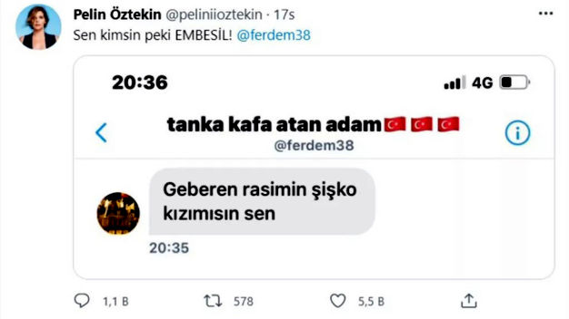 Buraya kadar her şey normaldi. Ta ki bir kendini bilmezin attığı mesaj gelene kadar. Babasının ölümünden sonra yeni yeni toparlandığı görülen oyuncu Pelin Öztekin, Twitter'dan kendisine gelen o mesaja önce inanmak istemedi. Sonra da bu çirkin mesajı paylaşarak herkesin görmesini sağladı. Tanka kafa atan adam rumuzuyla “Geberen Rasim'in şişko kızı mısın sen?" mesajını atan serseriye Pelin Öztekin de gereken cevabı verdi. “Sen de kimsin embesil!” diyerek tepki veren Pelin Öztekin tüm sevenlerinin yüzünü güldürdü. Canlitv olarak bu kendini bilmez takipçinin tüm Türkiye’den özür dilemesini bekliyoruz.