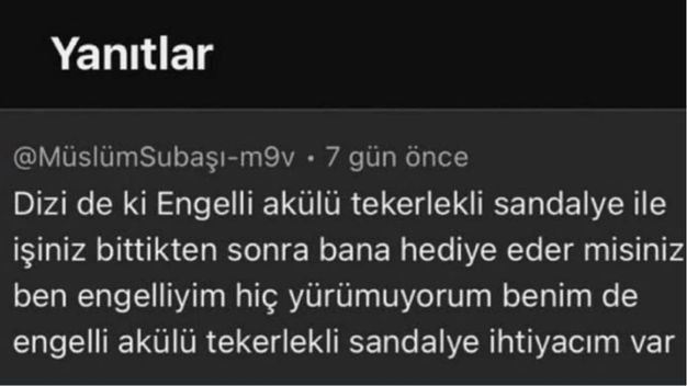 Televizyon ekranlarında pazar akşamları seyirci karşısına gelen Sahtekarlar dizisinin resmi Instagram hesabına yapılan bir yorum dizi ekibinin gözünden kaçmadı. Sahtekarlar dizisinde akülü tekerlekli sandalyenin kullanıldığı sahnenin altına yorumu yapan kullanıcı, Sahtekarlar ekibi tarafından araştırılıp bulundu. Müslüm Subaşı isimli kullanıcı "Dizideki engelli akülü elektrikli sandalye ile işiniz bittikten sonra bana hediye edebilir misiniz? Ben engelliyim hiç yürümüyorum. Benim de engelli akülü tekerlekli sandalye ihtiyacım var" yorumu diğer yorumlar arasından dikkat çekti. Yorumu okuyan dizi ekibi, Müslüm Subaşı için adeta seferber oldu. Akülü elektrikli sandalye alarak sosyal medya kullanıcısına hediye etti.