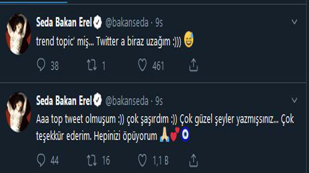 Sosyal medyadan paylaştığı kırk Mevlid'ine takipçileri tarafından övgü dolu sözlerle yorumlar alan Seda Bakan twitter'da trend topic olduğunu anlayınca takipçilerine teşekkür etti. Bakan, kendisine çok güzel tepkilerle paylaşımlarda bulunan takipçilerine yönelik, "Çok güzel şeyler yazmışsınız. Çok teşekkür ediyorum, hepinizi öpüyorum" şeklinde bir mesaj paylaştı.