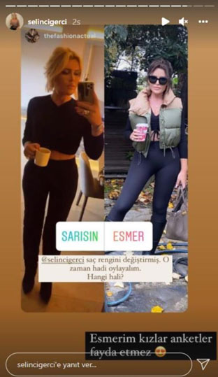 Selin Ciğerci sosyal medya hesabından yaptığı paylaşımda saçlarının rengini değiştirerek sarı olan rengini koyuya çevirmişti. Ünlü isim bunun nedeni olarak annesini gösterdi ve bir paylaşım yaptı. Selin Ciğerci paylaşımında “saç rengimi beğendiniz mi? Annem çok istedi. Sana çok yakışacak, söz veriyorum dedi. Galiba haklı ama gözüm alışmadı hala” ifadelerini kullandı. Takipçileri tarafından çokça beğeni alan Selin Ciğerci yeni halini beğenmediğini ifade edenlere ise yine cevap olarak “böyle de güzel” ifadelerini kullandı. Ayrıca ünlü ismin zayıflığı da dikkatleri çekti.