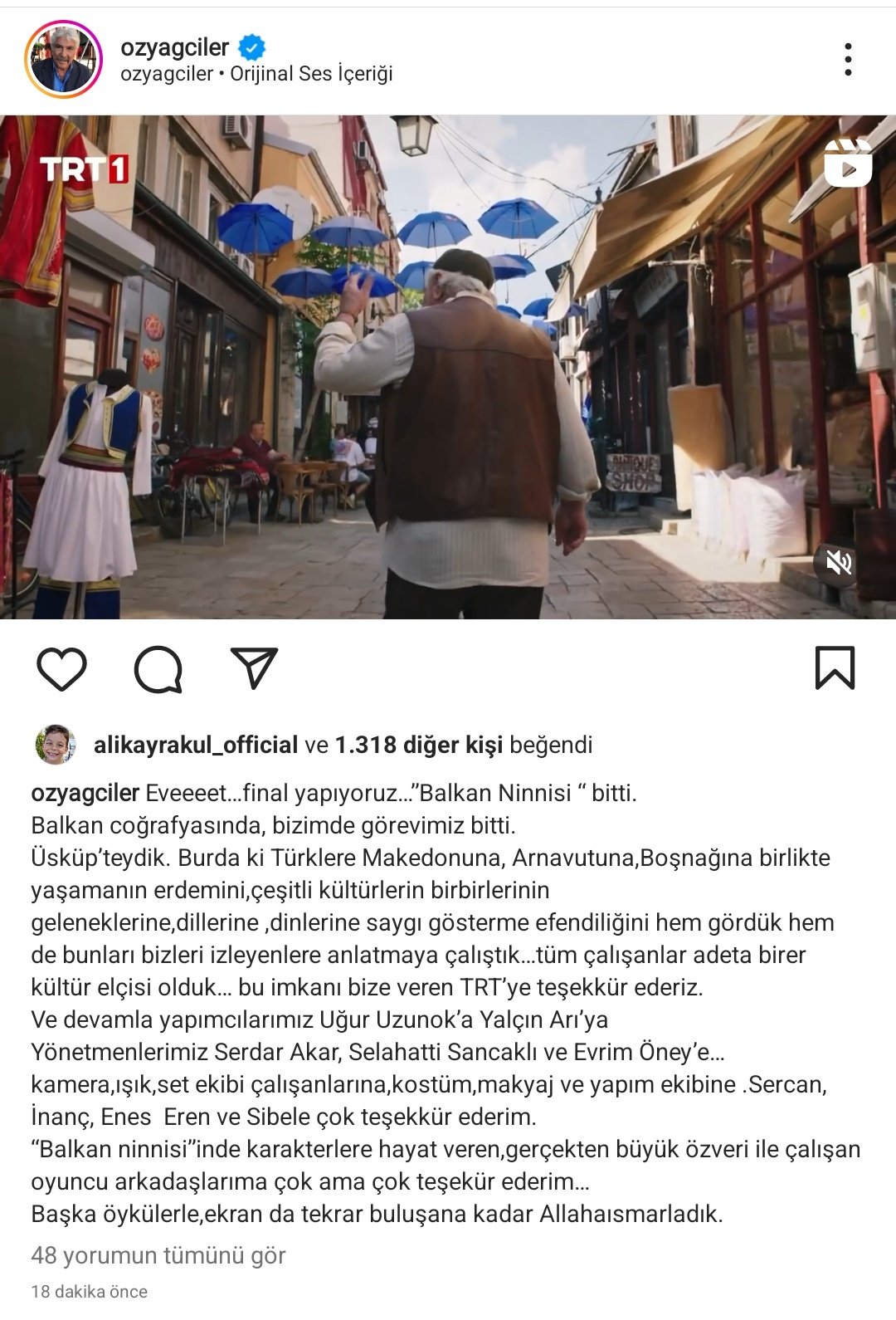 Ünlü oyuncu Erdal Özyağcılar duygu yüklü veda mesajında dizinin final yapacağını “ Evet, final yapıyoruz. Balkan Ninnisi bitti. Bizim de görevimiz bitti.” diyerek duyurdu. İşte o veda mesajı.