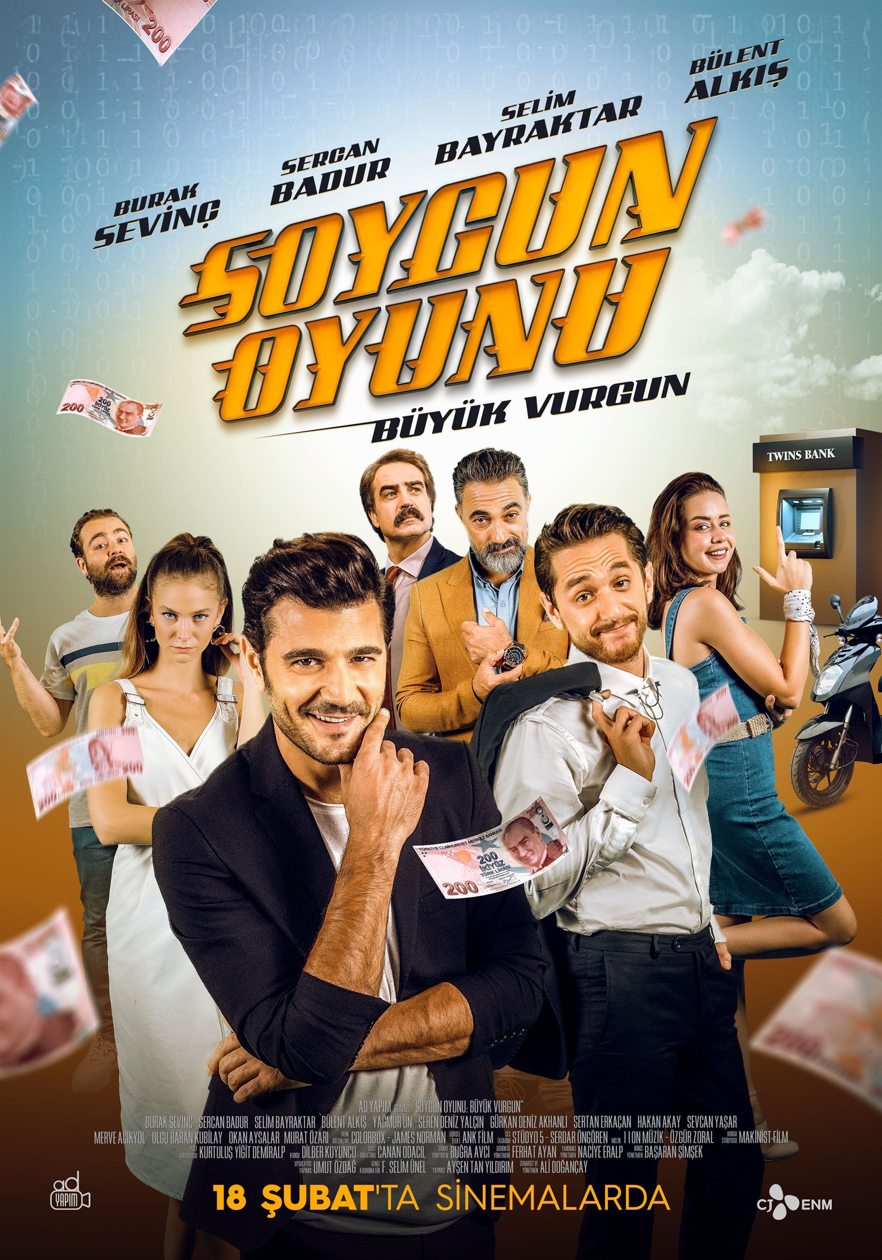 Sinema salonlarında 14-20 şubat haftası 4’ü yerli 8 film vizyona girecek. Bu filmlerden biride ‘Soygun Oyunu: Büyük Vurgun’ adlı film. Yapımcılığını AD yapımın üstlendiği Ali Doğançay’ın yazıp yönettiği Soygun Oyunu: Büyük Vurgun 18 Şubat’ta sinemalarda yerini alacak. Merakla beklenen filmin başrollerinde Burak Sevinç ve Serdar Badur’un yer aldığı Ali ve Okan karakterlerini canlandıracakları film merakla bekleniyor. Fragmanı ve afişi yayınlanan filmin galasıda yapıldı. İşte Soygun Oyunu: Büyül Vurgun filmi ile ilgili detaylar…