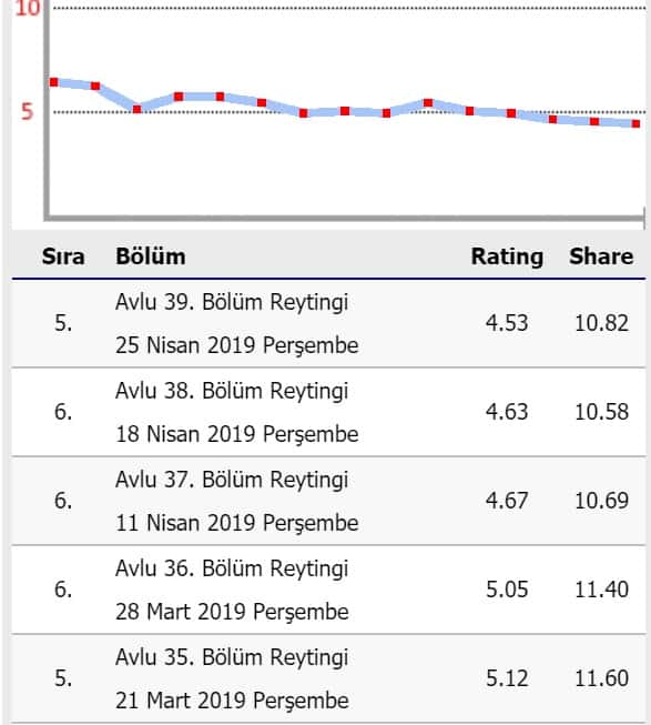 Avlu dizisinin final yapması aslında çok da şaşırılacak bir durum değildi. İkinci sezona başlayan Avlu dizisi ilk sezondaki çoğu izleyicisini kaybetmişti. İzleyicisini kaybeden dizi, reytinglerde adeta bir çöküş yaşadı. Yayınlanmaya başladığı zamandan beri 6 reyting alan dizi, ikinci sezonda 4 reytinge kadar geriledi. Reytinglerde düşüş yaşayan diziye kanal tarafından müdahale edildi. Star Tv, Perşembe akşamları pasif kalınca dizinin final yapması doğrultusunda karar verdi. Dizinin final yapmasının bir diğer sebebi olarak ATV ekranlarında yayınlanan Bir Zamanlar Çukurova dizisi görüldü. Avlu dizisi sezon finali tatilindeyken Perşembe akşamlarının galibi olan Bir Zamanlar Çukurova dizisi büyük bir izleyici kitlesine sahip oldu. Avlu'nun ikinci sezona bomba gibi olaylarla başlaması bile Bir Zamanlar Çukurova'yı tahtından indiremedi. İkinci sezondan beri bir türlü reytinglerde başarı gösteremeyen dizinin final yapması oldukça beklenen bir durumdu. Sevilen dizi Avlu 30 Mayıs 2019 Perşembe saat 20.00 de 44. bölümü ile ekranlara veda edecek. Dizinin hayranları bu habere çok üzüldü. Star Tv, Avlu dizisinin yanı sıra çok severek izlenen Pazartesi akşamlarının fenomen dizisi Söz dizisi için de final kararı aldı.