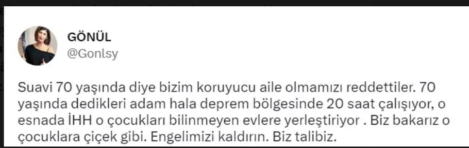 Öksüz ve yetim çocuklara koruyucu aile olmak için başvuranlardan birisi de ünlü ses sanatçısı ve bestekar Suavi . Mehmet Suavi Saygan ve eşi Gönül Saygan beraber koruyucu olmak için dilekçe verdiler. Twitter hesabından bu başvurularının olumsuz neticelendiğini duyuran Gönül Saygan "Suavi 70 yaşında diye bizim koruyucu aile olmamızı reddettiler. 70 yaşında dedikleri adam, hâlâ deprem bölgesinde 20 saat çalışıyor. Biz o çocuklara, çiçek gibi bakarız. Engelimizi kaldırın. Biz talibiz" şeklinde yaptığı paylaşımla üzüntülerini belirtti.