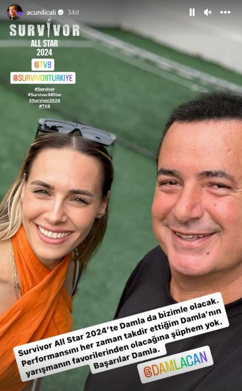 Tv 8 ekranlarının efsane yarışma programı Survivor All Star 2024 ekrana gelmek için hazırlıklarını sürdürüyor. Şu sıralar yarışmaya katılacak adayların belirlendiği süreçte yeni bir isim daha kadroya katıldı. Acun Ilıcalı ile birlikte sosyal medya hesabından yaptığı paylaşımla bunu duyuran Damla Can yarışmanın yeni adayı oldu. Daha önce ilk olarak 2026 yılında katıldığı yarışmada oldukça başarılı bir dönem geçiren ve finale kadar yükselen başarılı isim finalde yarışmayı kaybetmişti. Bu deneyimin ardından Damla can 2018 yılında gerçekleşen Survivor All Star yarışmasında da yer almış ve burada da oldukça başarılı bir dönem geçirmişti. Şimdi de ünlü isim üçüncü kez Survivor yarışmasına katılma kararı aldı.