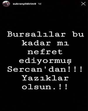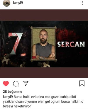 Bu seneki Survivor diğer tüm Survivorlardan çok daha fazla gündem oldu ve çok daha fazla konuşuldu. Kavgalar, küfürler, elemeler, diskalifiyeler derken şimdi de bir yarışmacının babası üzerinden günde olmayı başardı. Survivor 2020’nin Ünlüler takımında yarışan ünlü eski futbolcu Sercan Yıldırım’ın babası Kenan Yıldırım oğlu Sercan yıldırım ve memleketi olan Bursa ve Bursalılar hakkında konuştu. Bir zamanlar Bursaspor’da top koşturan Sercan Yıldırım Bursasporlu taraftarları ikiye böldü ve fikir ayrılığına düşmelerine sebep oldu. Sercan Yıldırım Dominik’te yarışmaya devam ederken babası Kenan Yıldırım oğlunun Bursalılardan yeterli desteği göremediklerini belirterek adeta isyan etti. Sercan’ın veda konseyinde takımının en az oy alan yarışmacısı olması dolayısıyla babası Kenan Yıldırım sosyal medya hesabından bir paylaşımda bulundu. Baba Kenan Yıldırım “Bursa halkı evladına çok güzel sahip çıktı. Yazıklar olsun diyorum. Elen gel oğlum, Bursa Halkı hiçbir şeyi hak etmiyor” ifadelerini kullandı. Yine Sercan’ın annesi Şükran Yıldırım ise “Bursalılar bu kadar mı nefret ediyormuş Sercan’dan! Yazıklar olsun!” ifadelerini kullandı.