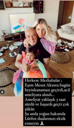 İnternet haber sitelerine ve sosyal medyaya düşen bir haber bir anda herkesi derin bir üzüntüye ve endişeye boğdu. Halen TRT 1 ekranlarında yayınlanan Teşkilat Dizisinde rol alan başarılı ve usta oyuncu Mesut Akusta’nın beyin kanamsı geçirdiği ve acil olarak ameliyata alındığı haberleri bir anda gündemin ilk sıralarına yerleşti. 57 yaşındaki usta oyuncunun Ankara’da evinde bulunduğu sırada beyin kanamsı geçirdiği ve ailensin ihbarı ile evine gelen sağlık ekiplerince hastaneye kaldırıldığı ve acil olarak ameliyata alındığı öğrenildi. Usta oyuncunun eşi Şafak Özbir Akusta sosyal medya hesabından yaptığı paylaşımla bu üzücü haberi sevenleriyle paylaşırken aynı zamanda da usta oyuncunun sevenlerinden dua istedi.
